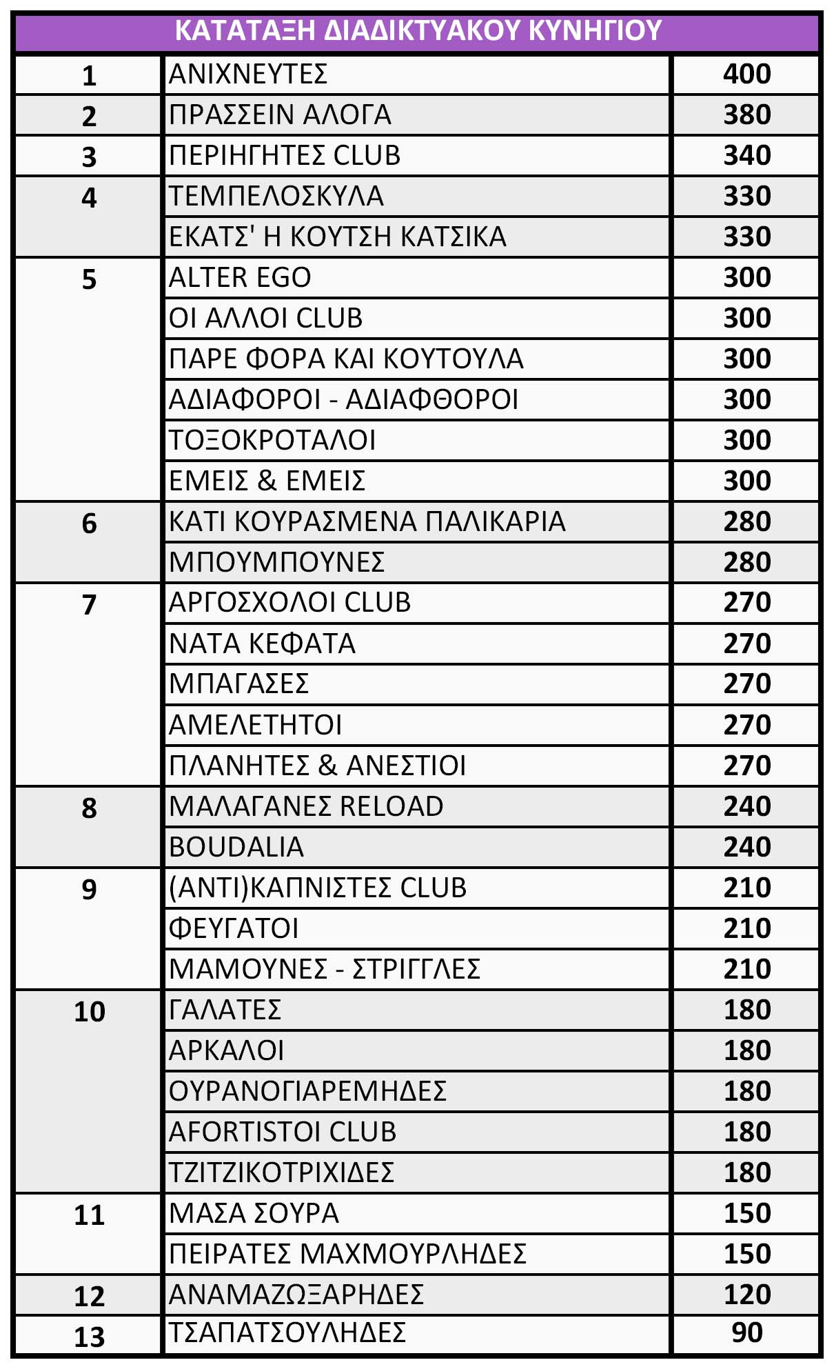 ΚΑΤΑΤΑΞΗ ΔΙΑΔΙΚΤΥΑΚΟΥ ΚΥΝΗΓΙΟΥ